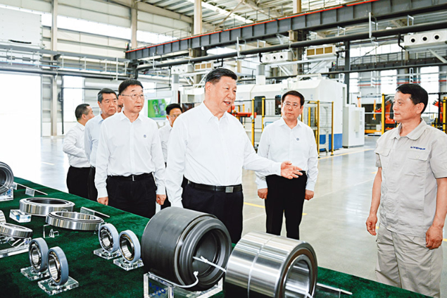 2025年5月19日至20日,中共中央总书记、国家主席、中央军委主席习近平在河南考察。这是19日下午,习近平在洛阳轴承集团股份有限公司智能工厂考察。 新华社记者 谢环驰/摄