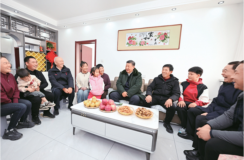 2025年1月22日至24日,中共中央总书记、国家主席、中央军委主席习近平冒着严寒来到辽宁,看望慰问基层干部群众。这是22日下午,习近平在葫芦岛市绥中县明水满族乡祝家沟村考察时,同村民王宝维一家围坐一起拉家常。 新华社记者 谢环驰/摄